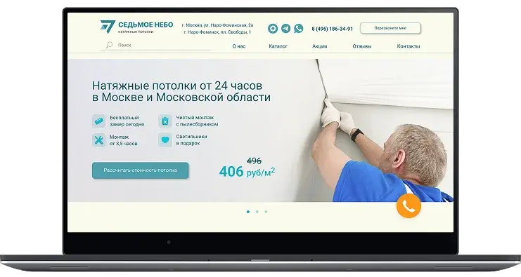 Веб-дизайн и разработка корпоративного сайта для компании по установке натяжных потолков.