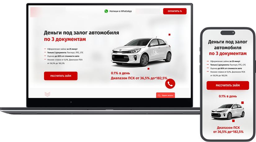 Веб-дизайн и разработка лендинга для компании, выдающей займы под залог транспортных средств.